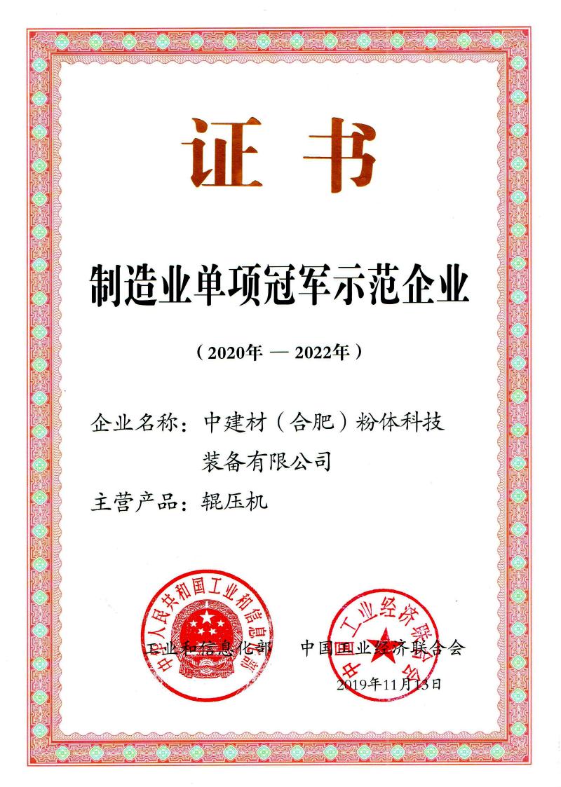 中建材(合肥)粉體科技裝備有限公司前身為合肥水泥研究設計院粉磨研究所,2011年8月,經合肥水泥研究設計院粉體工程公司與肥西節能設備廠聯合改制組建而成,國家高新技術企業,全國首批“制造業單項冠軍示范企業”,中國建材集團“六星企業”。